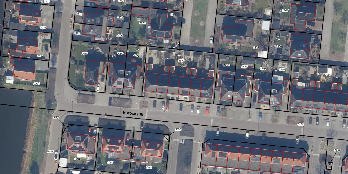 Het perceel waarop Eurosingel 9 staat heeft een oppervlakte van 1210 m². Dit is een zeer groot perceel. De perceeloppervlakte wordt geregistreerd door het Kadaster. Gedetailleerde informatie over de maten van dit perceel kunt u vinden in het rapport Kadastrale kaart met maatvoering van Eurosingel 9.
