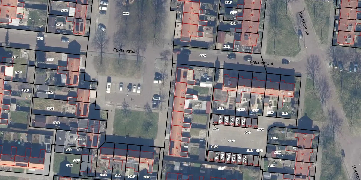 Het perceel waarop Fokkestraat 30 staat heeft een oppervlakte van 3996 m². Dit is een zeer groot perceel. De perceeloppervlakte wordt geregistreerd door het Kadaster. Gedetailleerde informatie over de maten van dit perceel kunt u vinden in het rapport Kadastrale kaart met maatvoering van Fokkestraat 30.