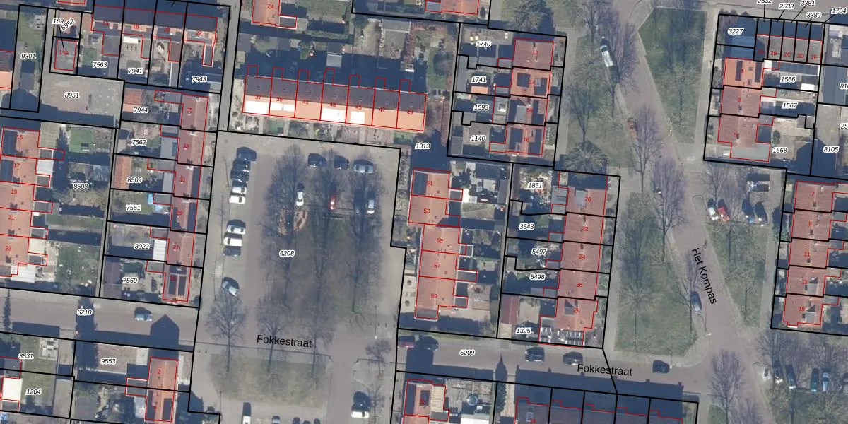 Het perceel waarop Fokkestraat 53 staat heeft een oppervlakte van 3633 m². Dit is een zeer groot perceel. De perceeloppervlakte wordt geregistreerd door het Kadaster. Gedetailleerde informatie over de maten van dit perceel kunt u vinden in het rapport Kadastrale kaart met maatvoering van Fokkestraat 53.