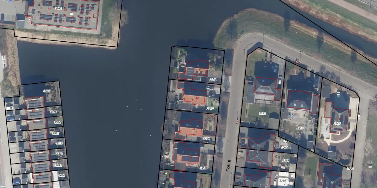 Het perceel waarop Forint 13 staat heeft een oppervlakte van 448 m². Dit is een groot perceel. De perceeloppervlakte wordt geregistreerd door het Kadaster. Gedetailleerde informatie over de maten van dit perceel kunt u vinden in het rapport Kadastrale kaart met maatvoering van Forint 13.