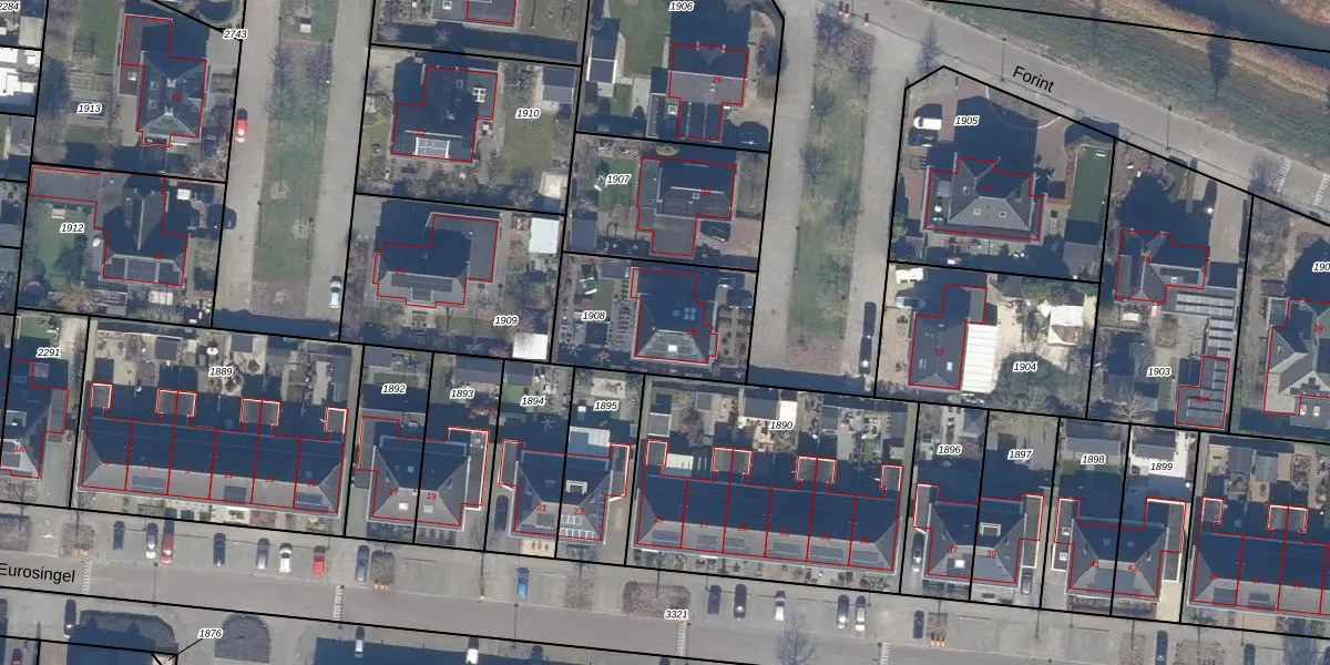 Het perceel waarop Forint 30 staat heeft een oppervlakte van 502 m². Dit is een groot perceel. De perceeloppervlakte wordt geregistreerd door het Kadaster. Gedetailleerde informatie over de maten van dit perceel kunt u vinden in het rapport Kadastrale kaart met maatvoering van Forint 30.