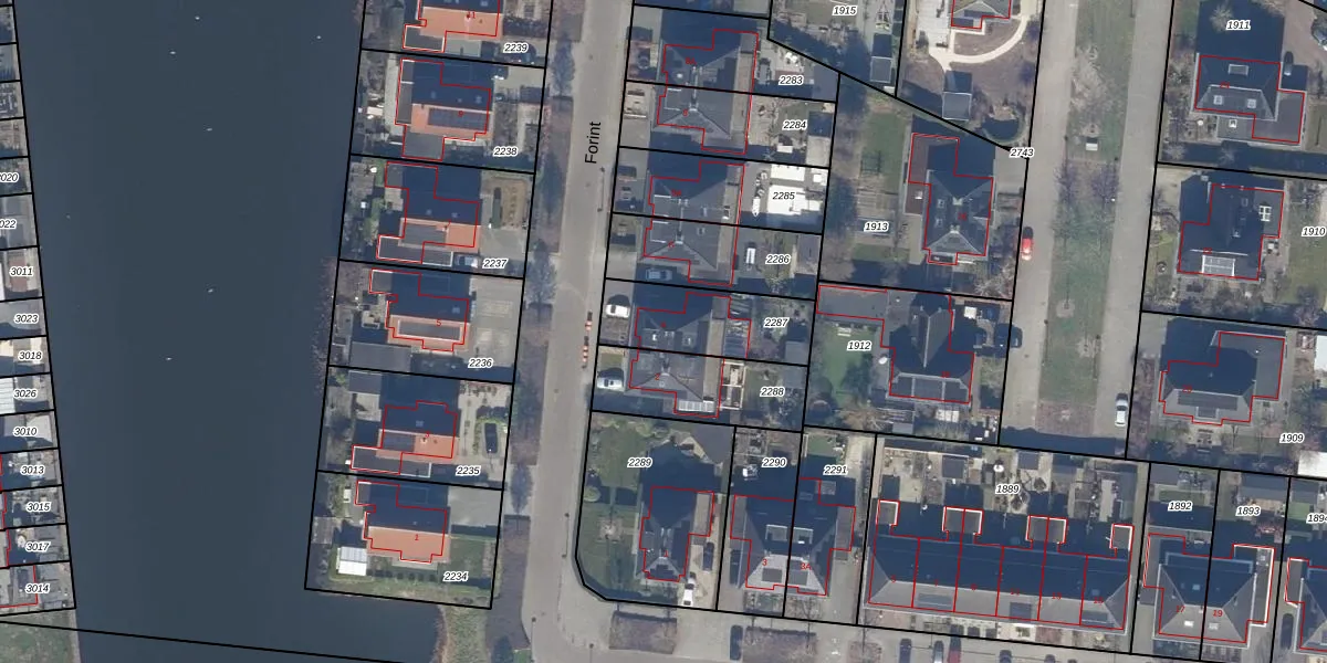 Het perceel waarop Forint 4 staat heeft een oppervlakte van 320 m². Dit is een groot perceel. De perceeloppervlakte wordt geregistreerd door het Kadaster. Gedetailleerde informatie over de maten van dit perceel kunt u vinden in het rapport Kadastrale kaart met maatvoering van Forint 4.