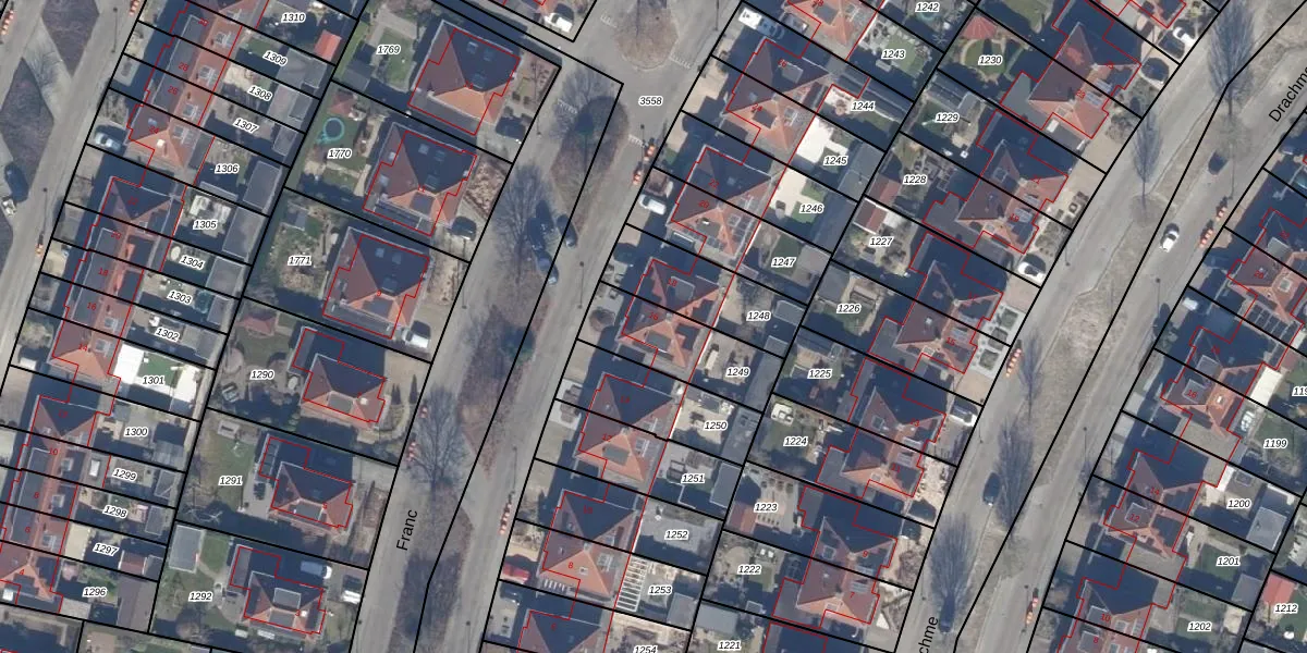 Het perceel waarop Franc 16 staat heeft een oppervlakte van 284 m². Dit is een middelgroot perceel. De perceeloppervlakte wordt geregistreerd door het Kadaster. Gedetailleerde informatie over de maten van dit perceel kunt u vinden in het rapport Kadastrale kaart met maatvoering van Franc 16.