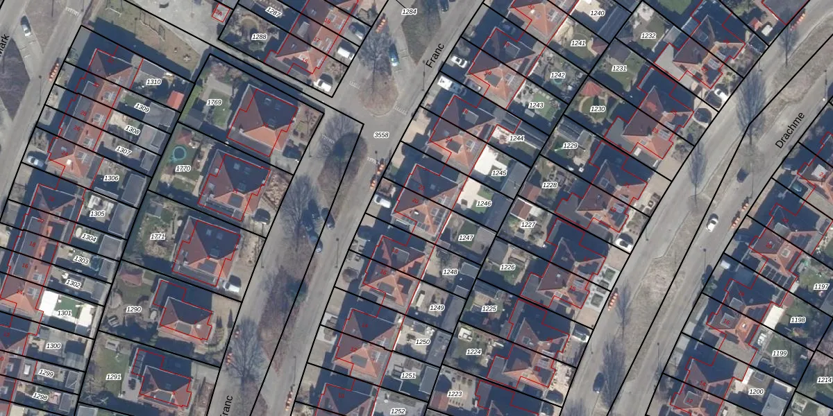Het perceel waarop Franc 20 staat heeft een oppervlakte van 284 m². Dit is een middelgroot perceel. De perceeloppervlakte wordt geregistreerd door het Kadaster. Gedetailleerde informatie over de maten van dit perceel kunt u vinden in het rapport Kadastrale kaart met maatvoering van Franc 20.