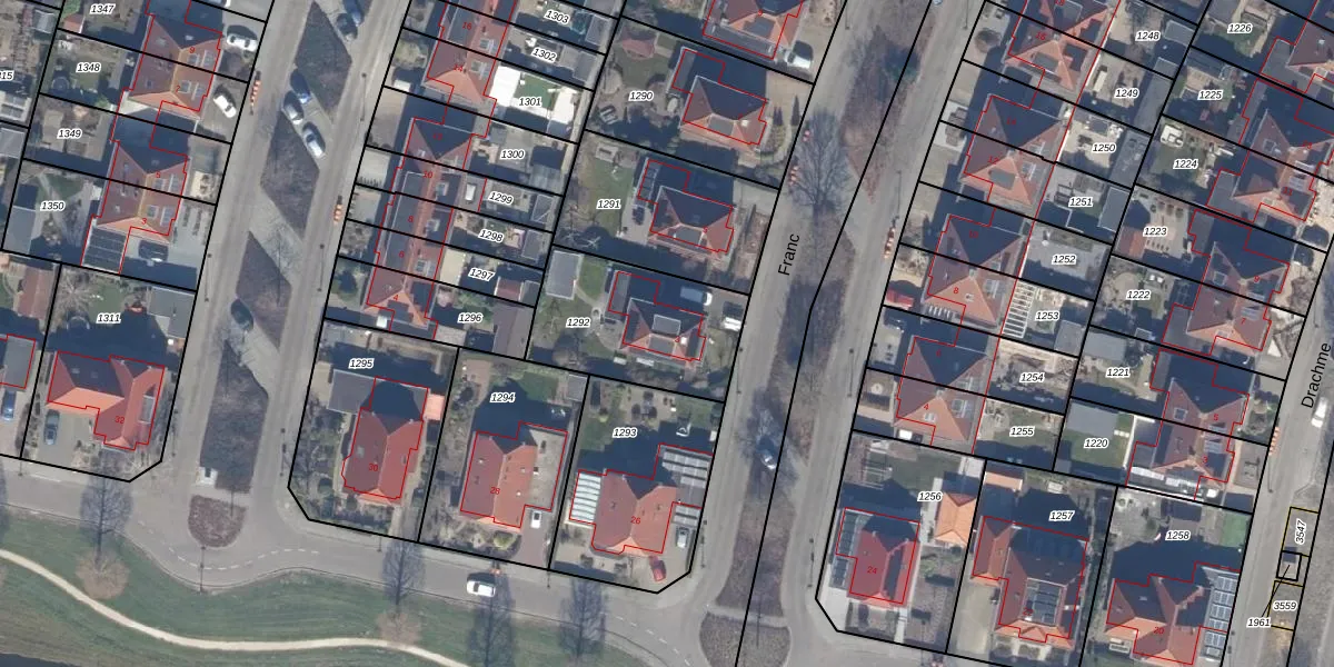 Het perceel waarop Franc 3 staat heeft een oppervlakte van 531 m². Dit is een groot perceel. De perceeloppervlakte wordt geregistreerd door het Kadaster. Gedetailleerde informatie over de maten van dit perceel kunt u vinden in het rapport Kadastrale kaart met maatvoering van Franc 3.