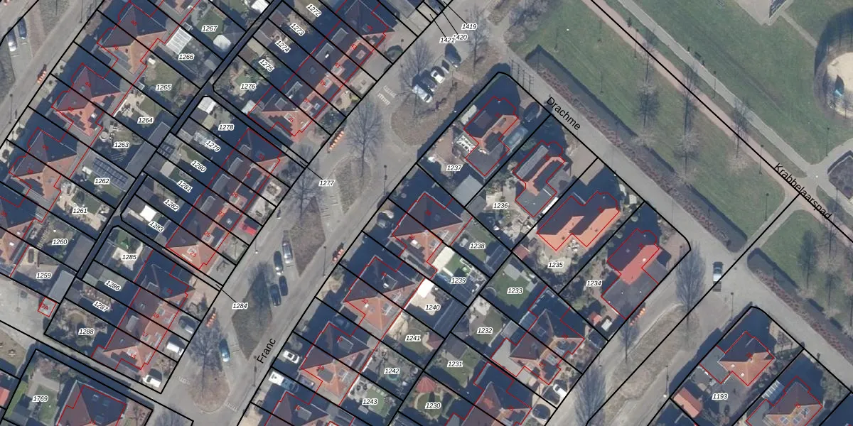 Het perceel waarop Franc 38 staat heeft een oppervlakte van 285 m². Dit is een middelgroot perceel. De perceeloppervlakte wordt geregistreerd door het Kadaster. Gedetailleerde informatie over de maten van dit perceel kunt u vinden in het rapport Kadastrale kaart met maatvoering van Franc 38.