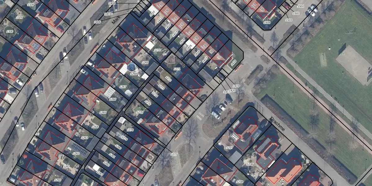 Het adres is gelegen op perceel 1272 in de sectie K en de kadastrale gemeente Dronten. De kadastrale aanduiding is aldus DTN01-K-1272. Het perceel is 171 m² groot. Dat is kleiner dan de gemiddelde perceeloppervlakte in Dronten, dat op 1,8 ha ligt. Het kleinste perceel in de kadastrale gemeente is 0 m² groot. De grootste perceeloppervlakte is 25,03 km². Op het perceel bevinden zich geen andere adressen. In de Basisregistratie Kadaster (BRK) werden de grenzen van het perceel geregistreerd op 07-12-2006.
