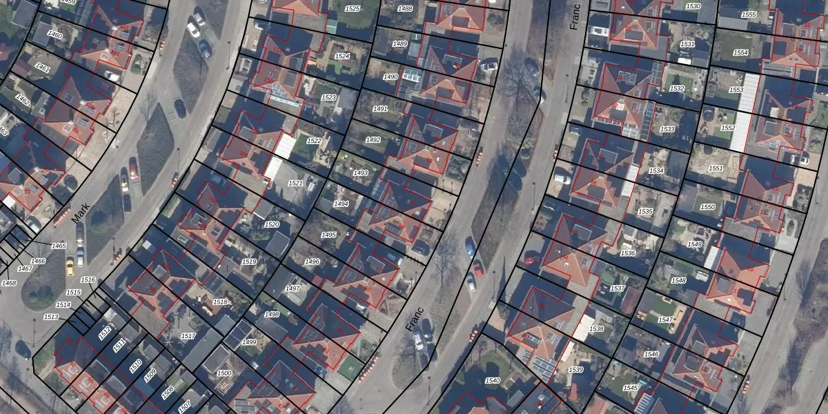 Het perceel waarop Franc 61 staat heeft een oppervlakte van 267 m². Dit is een middelgroot perceel. De perceeloppervlakte wordt geregistreerd door het Kadaster. Gedetailleerde informatie over de maten van dit perceel kunt u vinden in het rapport Kadastrale kaart met maatvoering van Franc 61.