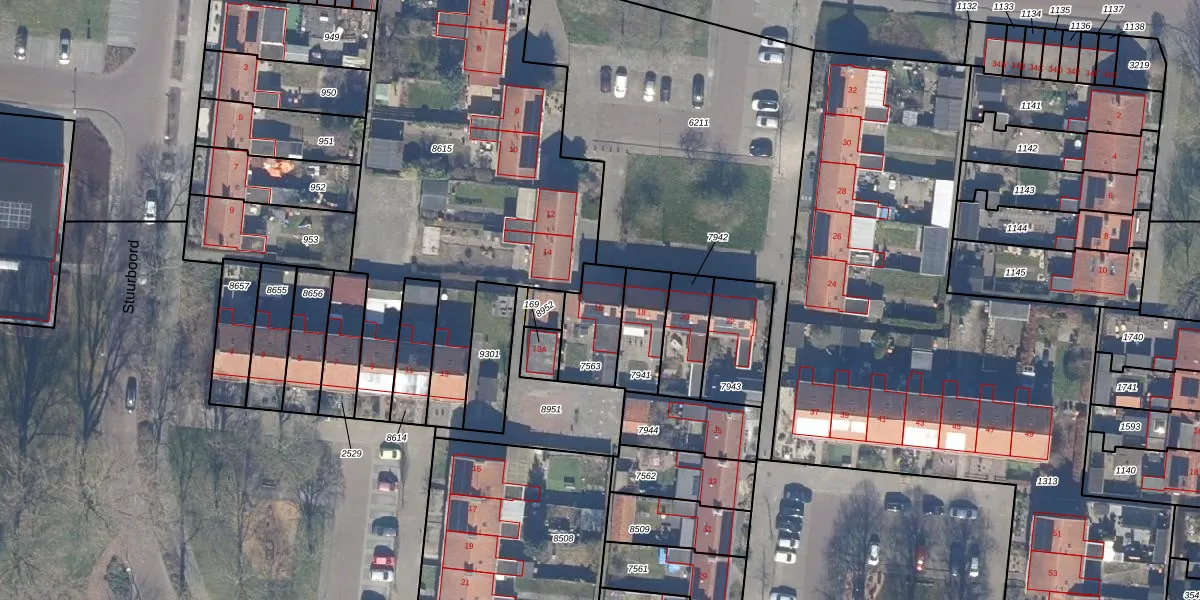 Gebruik de zoekbalk of klik op een perceel voor informatie over de adressen binnen dit perceel.