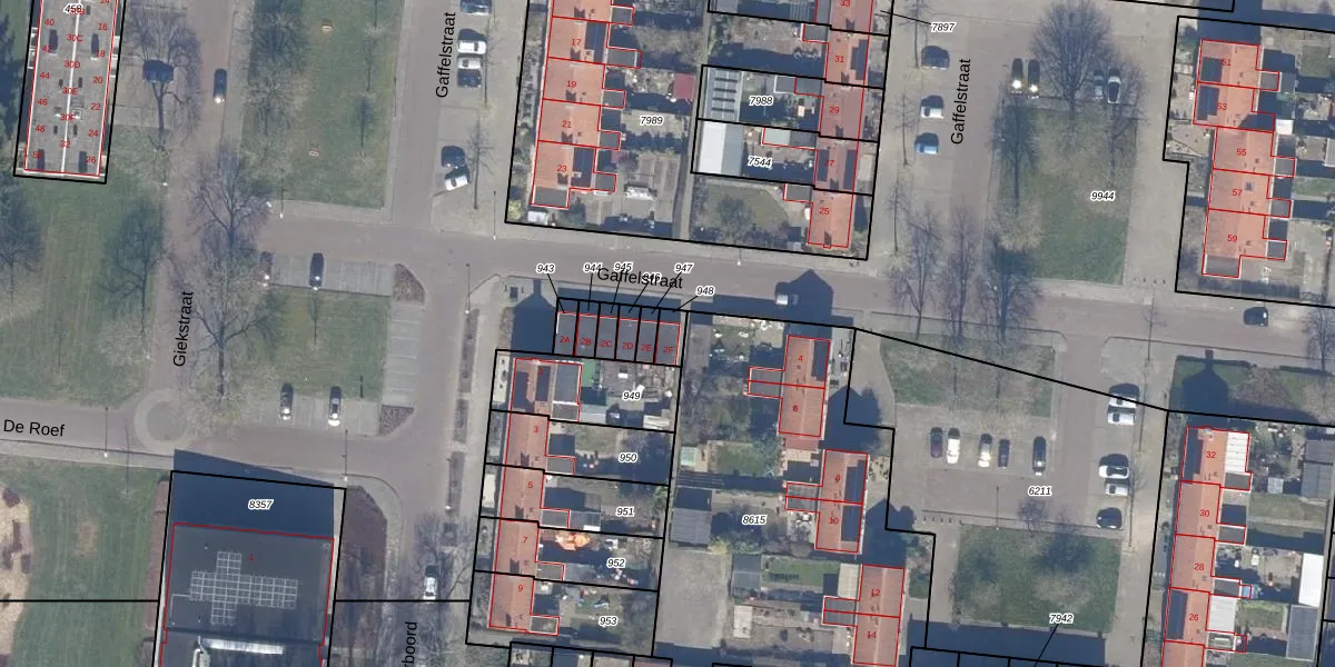 Gaffelstraat 2-F is gelegen op kadastraal perceel DTN01A948. Deze kadastrale aanduiding is uniek en wordt gebruikt door het Kadaster om eigendomsrechten en andere zakelijke rechten vast te leggen. Het perceel maakt onderdeel uit van de kadastrale gemeente Dronten.