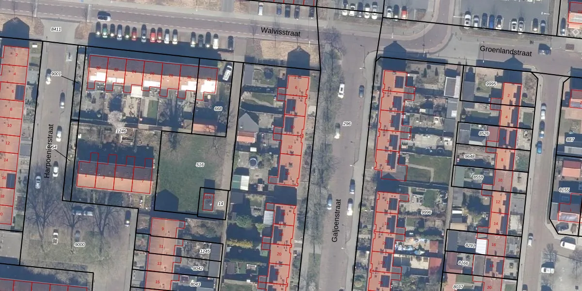Het perceel waarop Galjoenstraat 12 staat heeft een oppervlakte van 5567 m². Dit is een zeer groot perceel. De perceeloppervlakte wordt geregistreerd door het Kadaster. Gedetailleerde informatie over de maten van dit perceel kunt u vinden in het rapport Kadastrale kaart met maatvoering van Galjoenstraat 12.