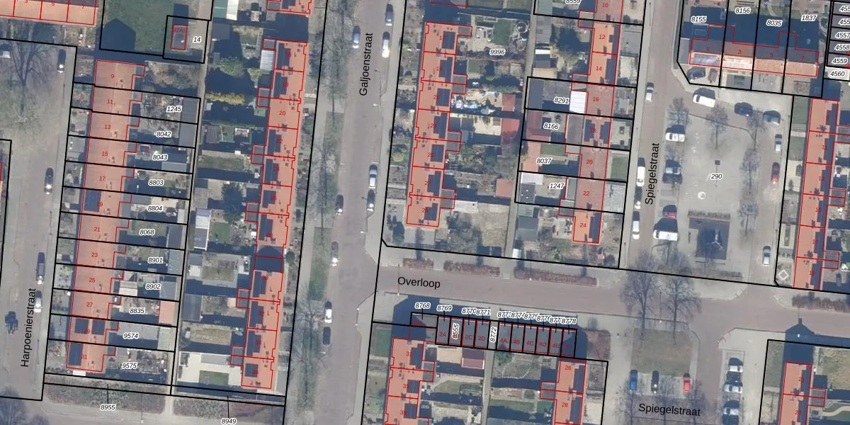 Het perceel waarop Galjoenstraat 29 staat heeft een oppervlakte van 3928 m². Dit is een zeer groot perceel. De perceeloppervlakte wordt geregistreerd door het Kadaster. Gedetailleerde informatie over de maten van dit perceel kunt u vinden in het rapport Kadastrale kaart met maatvoering van Galjoenstraat 29.