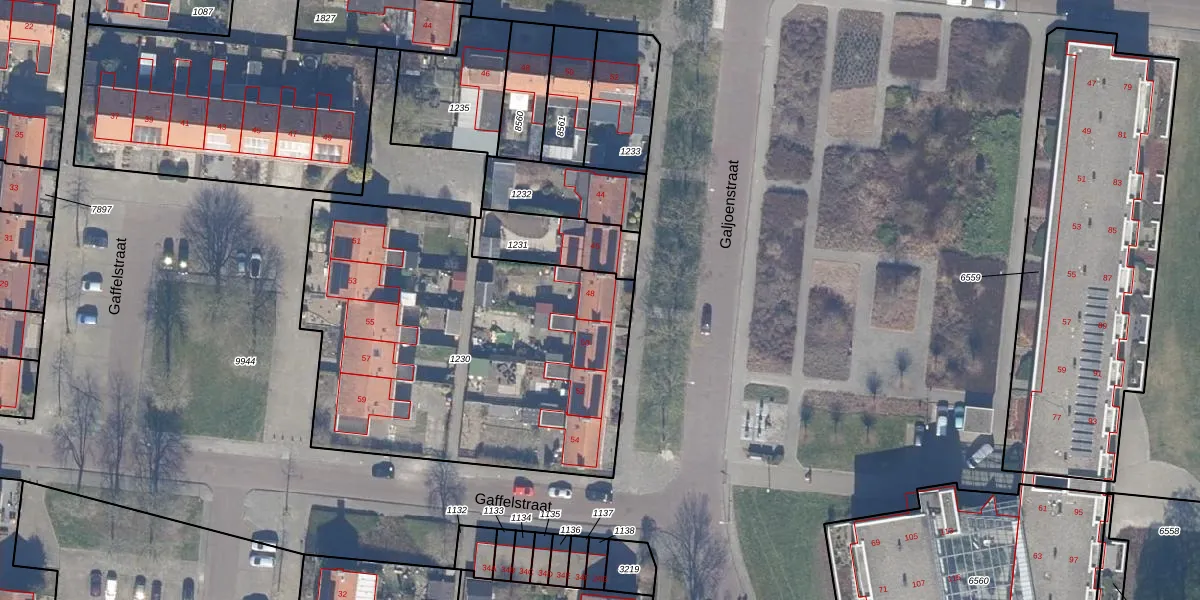 Het perceel waarop Galjoenstraat 48 staat heeft een oppervlakte van 1978 m². Dit is een zeer groot perceel. De perceeloppervlakte wordt geregistreerd door het Kadaster. Gedetailleerde informatie over de maten van dit perceel kunt u vinden in het rapport Kadastrale kaart met maatvoering van Galjoenstraat 48.