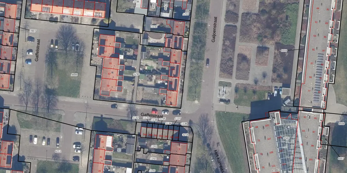 Het perceel waarop Galjoenstraat 52 staat heeft een oppervlakte van 1978 m². Dit is een zeer groot perceel. De perceeloppervlakte wordt geregistreerd door het Kadaster. Gedetailleerde informatie over de maten van dit perceel kunt u vinden in het rapport Kadastrale kaart met maatvoering van Galjoenstraat 52.