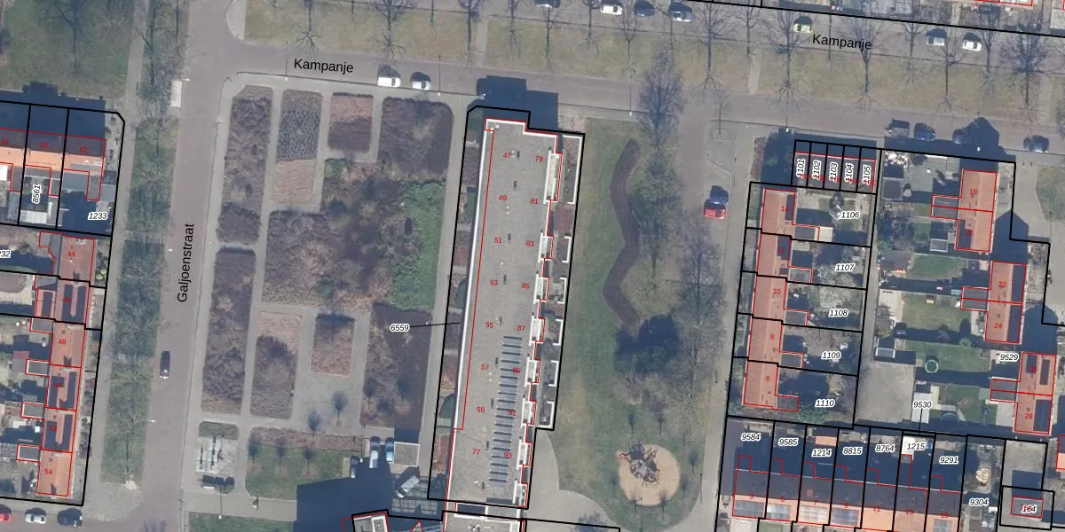 Het perceel waarop Galjoenstraat 83 staat heeft een oppervlakte van 1563 m². Dit is een zeer groot perceel. De perceeloppervlakte wordt geregistreerd door het Kadaster. Gedetailleerde informatie over de maten van dit perceel kunt u vinden in het rapport Kadastrale kaart met maatvoering van Galjoenstraat 83.