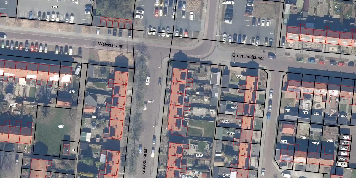 Het perceel waarop Galjoenstraat 9 staat heeft een oppervlakte van 3928 m². Dit is een zeer groot perceel. De perceeloppervlakte wordt geregistreerd door het Kadaster. Gedetailleerde informatie over de maten van dit perceel kunt u vinden in het rapport Kadastrale kaart met maatvoering van Galjoenstraat 9.