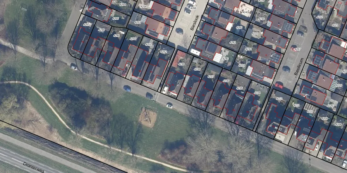 Het adres is gelegen op perceel 4239 in de sectie A en de kadastrale gemeente Dronten. De kadastrale aanduiding is aldus DTN01-A-4239. Het perceel is kleiner dan gemiddeld in Dronten. Het perceel is 274 m² groot, terwijl het gemiddelde ligt op 1,8 ha. Het kleinste perceel in de kadastrale gemeente is 0 m² groot. De grootste perceeloppervlakte is 25,03 km². Er zijn geen andere adressen aanwezig op het perceel. De laatste wijziging in het de Basisregistratie Kadaster (BRK) was op 20-08-1997.