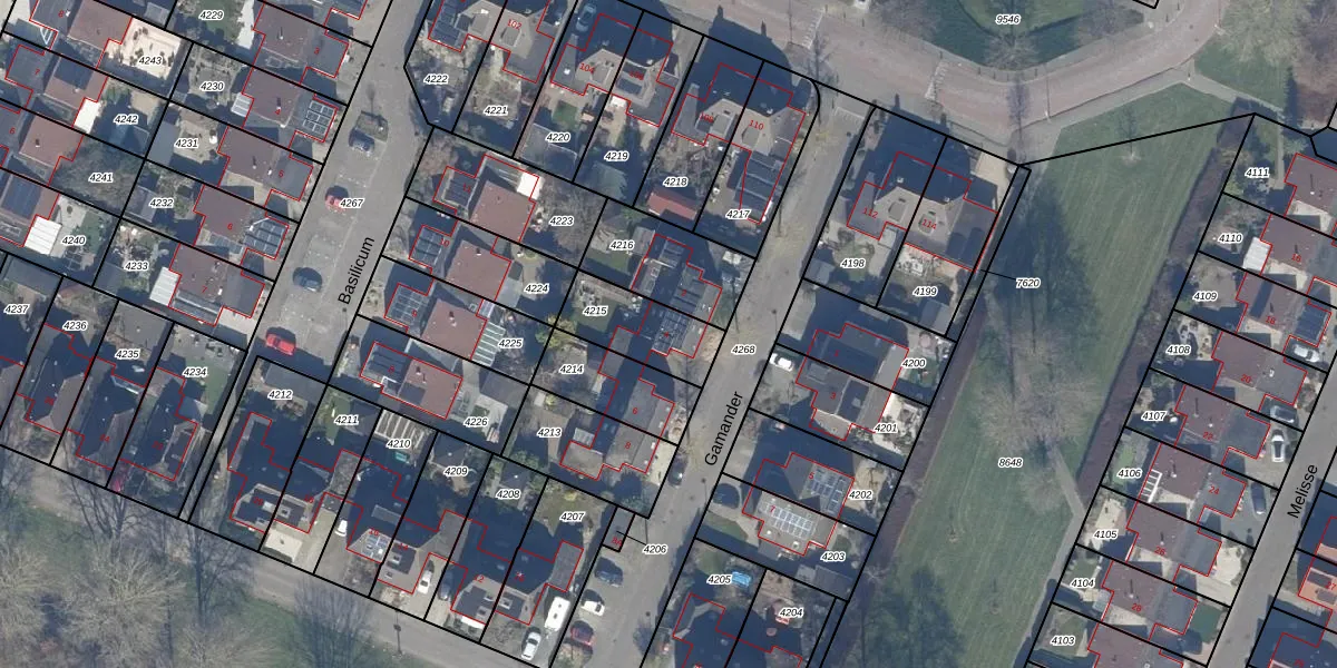 Het perceel waarop Gamander 4 staat heeft een oppervlakte van 224 m². Dit is een middelgroot perceel. De perceeloppervlakte wordt geregistreerd door het Kadaster. Gedetailleerde informatie over de maten van dit perceel kunt u vinden in het rapport Kadastrale kaart met maatvoering van Gamander 4.