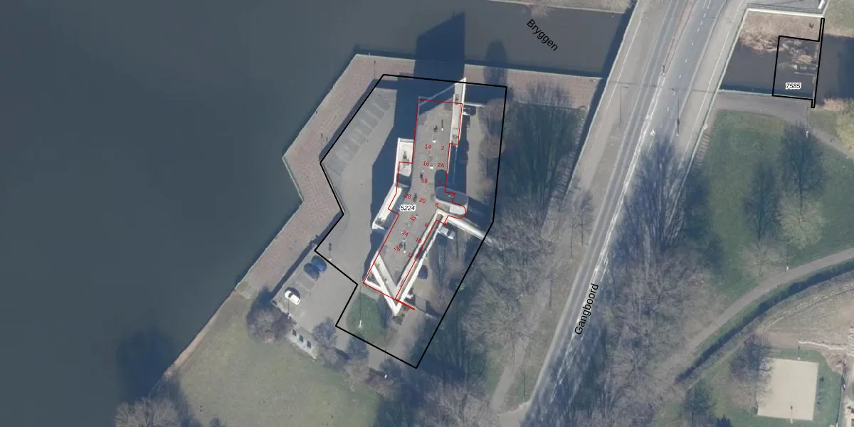 Het perceel waarop Gangboord 20 staat heeft een oppervlakte van 2070 m². Dit is een zeer groot perceel. De perceeloppervlakte wordt geregistreerd door het Kadaster. Gedetailleerde informatie over de maten van dit perceel kunt u vinden in het rapport Kadastrale kaart met maatvoering van Gangboord 20.