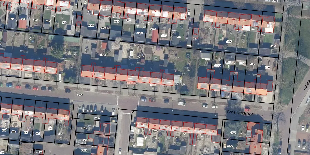 Het perceel waarop Groenlandstraat 35 staat heeft een oppervlakte van 4470 m². Dit is een zeer groot perceel. De perceeloppervlakte wordt geregistreerd door het Kadaster. Gedetailleerde informatie over de maten van dit perceel kunt u vinden in het rapport Kadastrale kaart met maatvoering van Groenlandstraat 35.