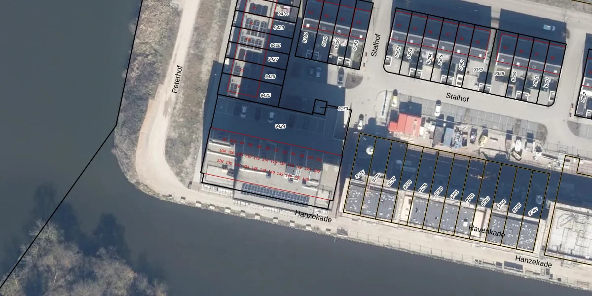 Het perceel waarop Hanzekade 148 staat heeft een oppervlakte van 1410 m². Dit is een zeer groot perceel. De perceeloppervlakte wordt geregistreerd door het Kadaster. Gedetailleerde informatie over de maten van dit perceel kunt u vinden in het rapport Kadastrale kaart met maatvoering van Hanzekade 148.
