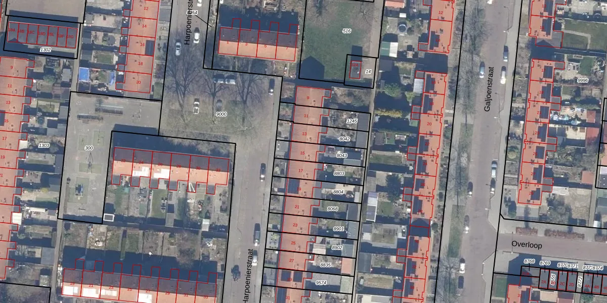 Het perceel waarop Harpoenierstraat 15 staat heeft een oppervlakte van 182 m². Dit is een middelgroot perceel. De perceeloppervlakte wordt geregistreerd door het Kadaster. Gedetailleerde informatie over de maten van dit perceel kunt u vinden in het rapport Kadastrale kaart met maatvoering van Harpoenierstraat 15.