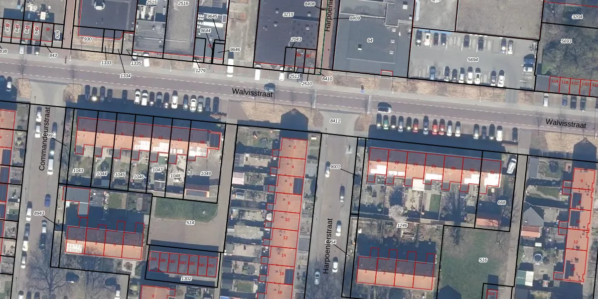Het perceel waarop Harpoenierstraat 2 staat heeft een oppervlakte van 7867 m². Dit is een zeer groot perceel. De perceeloppervlakte wordt geregistreerd door het Kadaster. Gedetailleerde informatie over de maten van dit perceel kunt u vinden in het rapport Kadastrale kaart met maatvoering van Harpoenierstraat 2.