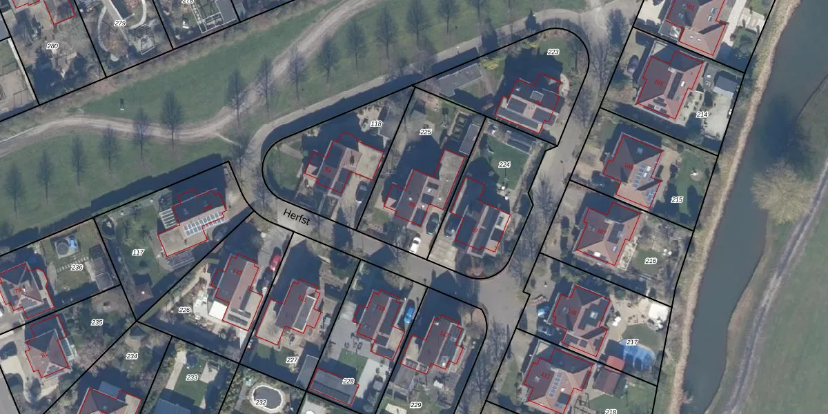 Herfst 95 is gelegen op kadastraal perceel DTN01L225. Deze kadastrale aanduiding is uniek en wordt gebruikt door het Kadaster om eigendomsrechten en andere zakelijke rechten vast te leggen. Het perceel maakt onderdeel uit van de kadastrale gemeente Dronten.