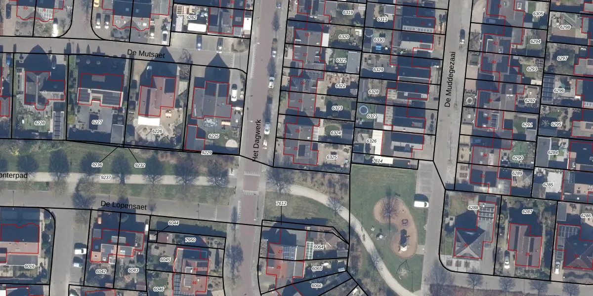 Het Dagwerk 25 is gelegen op kadastraal perceel DTN01A6325. Deze kadastrale aanduiding is uniek en wordt gebruikt door het Kadaster om eigendomsrechten en andere zakelijke rechten vast te leggen. Het perceel maakt onderdeel uit van de kadastrale gemeente Dronten.