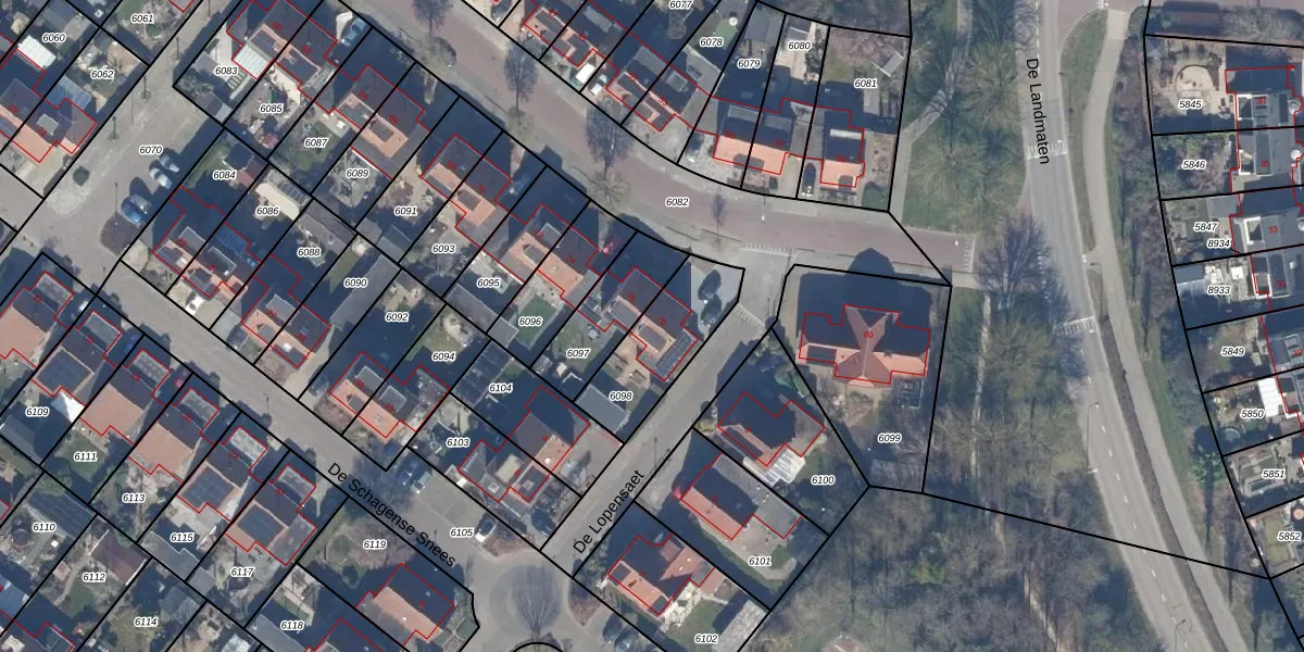 Gebruik de zoekbalk of klik op een perceel voor informatie over de adressen binnen dit perceel.