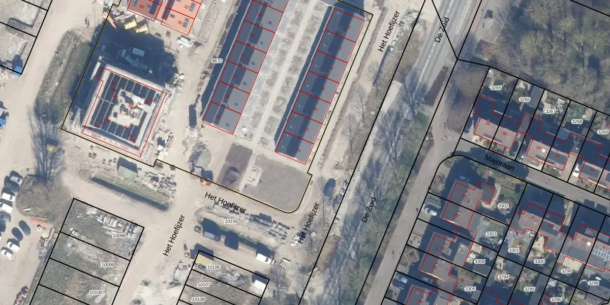 Het perceel waarop Het Hoefijzer 14 staat heeft een oppervlakte van 6133 m². Dit is een zeer groot perceel. De perceeloppervlakte wordt geregistreerd door het Kadaster. Gedetailleerde informatie over de maten van dit perceel kunt u vinden in het rapport Kadastrale kaart met maatvoering van Het Hoefijzer 14.