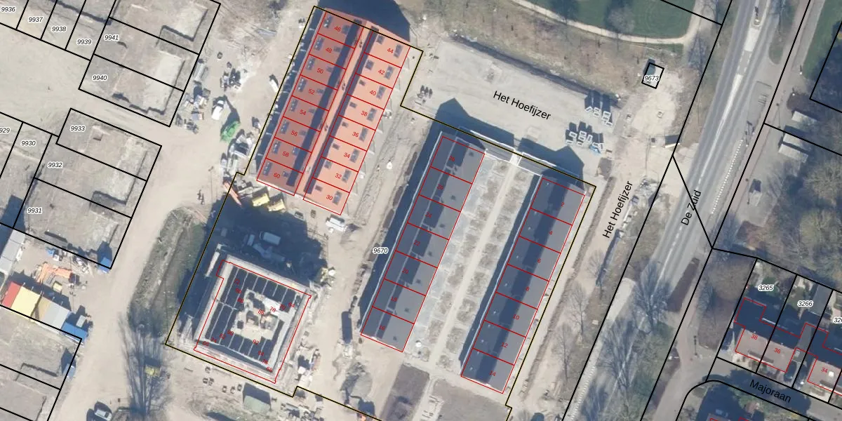 Het perceel waarop Het Hoefijzer 24 staat heeft een oppervlakte van 6133 m². Dit is een zeer groot perceel. De perceeloppervlakte wordt geregistreerd door het Kadaster. Gedetailleerde informatie over de maten van dit perceel kunt u vinden in het rapport Kadastrale kaart met maatvoering van Het Hoefijzer 24.