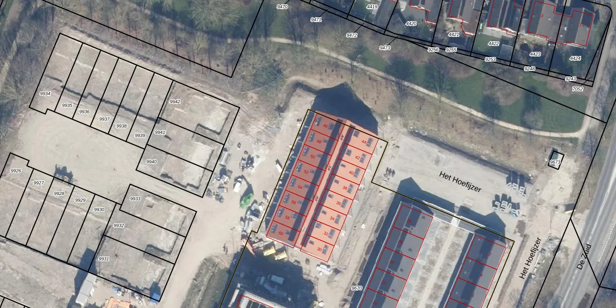 Het perceel waarop Het Hoefijzer 50 staat heeft een oppervlakte van 6133 m². Dit is een zeer groot perceel. De perceeloppervlakte wordt geregistreerd door het Kadaster. Gedetailleerde informatie over de maten van dit perceel kunt u vinden in het rapport Kadastrale kaart met maatvoering van Het Hoefijzer 50.