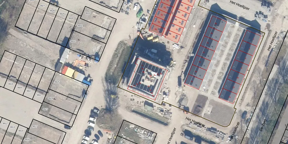 Het perceel waarop Het Hoefijzer 88 staat heeft een oppervlakte van 6133 m². Dit is een zeer groot perceel. De perceeloppervlakte wordt geregistreerd door het Kadaster. Gedetailleerde informatie over de maten van dit perceel kunt u vinden in het rapport Kadastrale kaart met maatvoering van Het Hoefijzer 88.