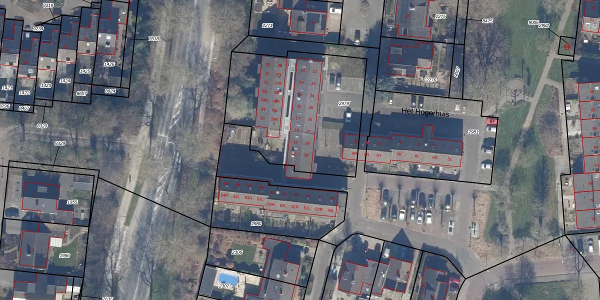 Het perceel waarop Het Hogerhuis 27 staat heeft een oppervlakte van 1580 m². Dit is een zeer groot perceel. De perceeloppervlakte wordt geregistreerd door het Kadaster. Gedetailleerde informatie over de maten van dit perceel kunt u vinden in het rapport Kadastrale kaart met maatvoering van Het Hogerhuis 27.