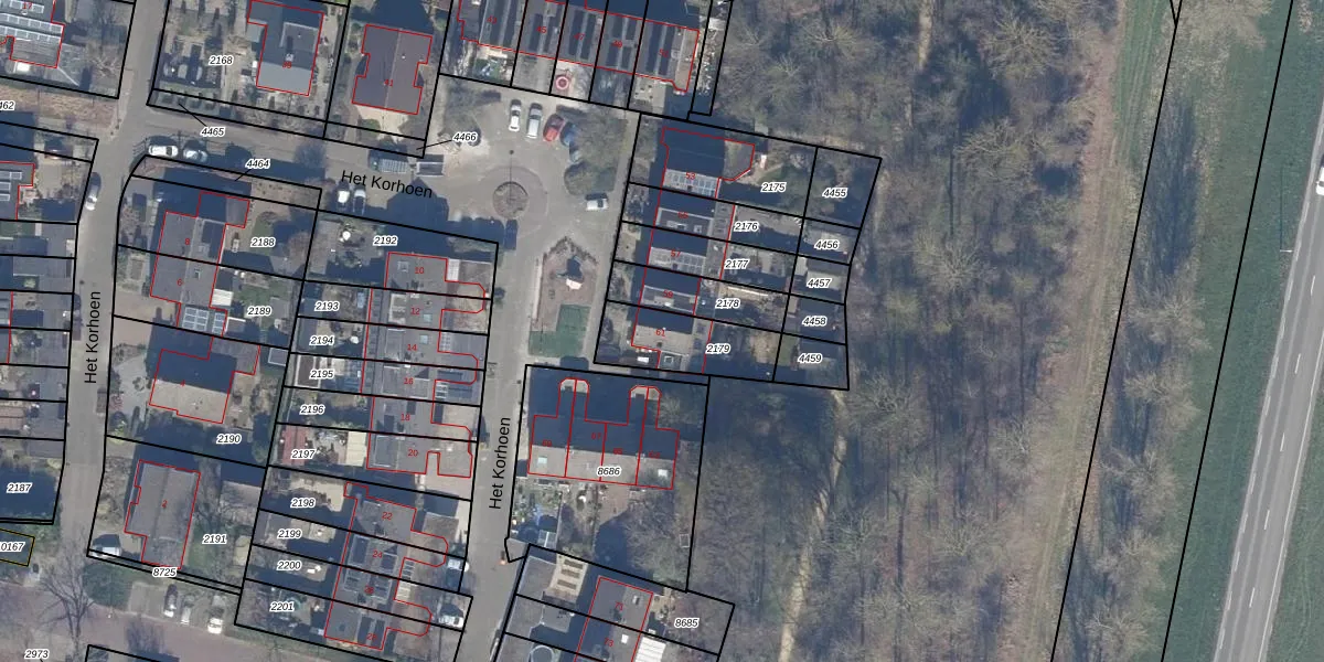 Het perceel waarop Het Korhoen 61 staat heeft een oppervlakte van 235 m². Dit is een middelgroot perceel. De perceeloppervlakte wordt geregistreerd door het Kadaster. Gedetailleerde informatie over de maten van dit perceel kunt u vinden in het rapport Kadastrale kaart met maatvoering van Het Korhoen 61.