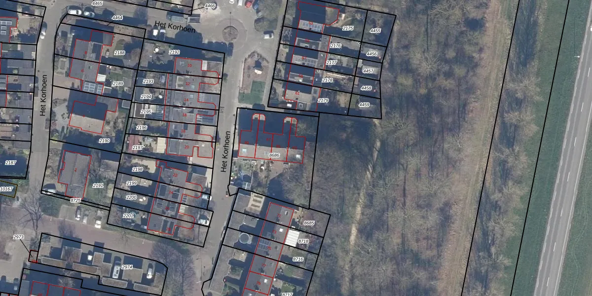 Het perceel waarop Het Korhoen 63 staat heeft een oppervlakte van 805 m². Dit is een groot perceel. De perceeloppervlakte wordt geregistreerd door het Kadaster. Gedetailleerde informatie over de maten van dit perceel kunt u vinden in het rapport Kadastrale kaart met maatvoering van Het Korhoen 63.