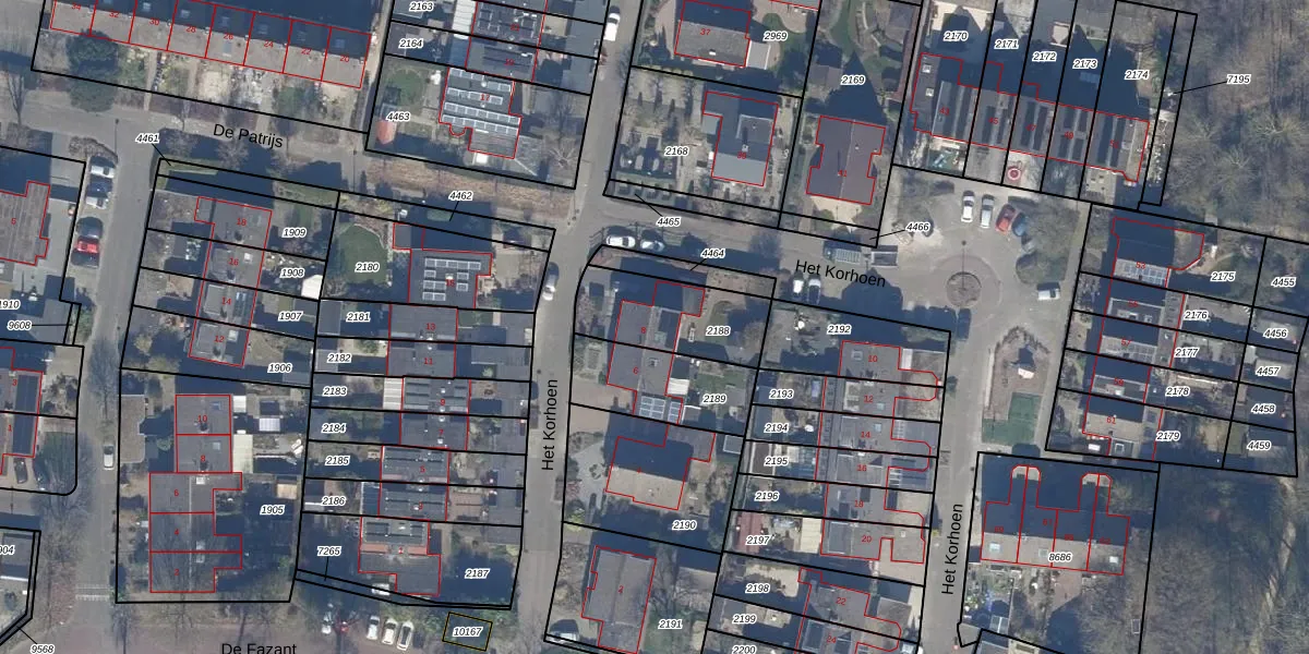 Het perceel waarop Het Korhoen 8 staat heeft een oppervlakte van 307 m². Dit is een groot perceel. De perceeloppervlakte wordt geregistreerd door het Kadaster. Gedetailleerde informatie over de maten van dit perceel kunt u vinden in het rapport Kadastrale kaart met maatvoering van Het Korhoen 8.