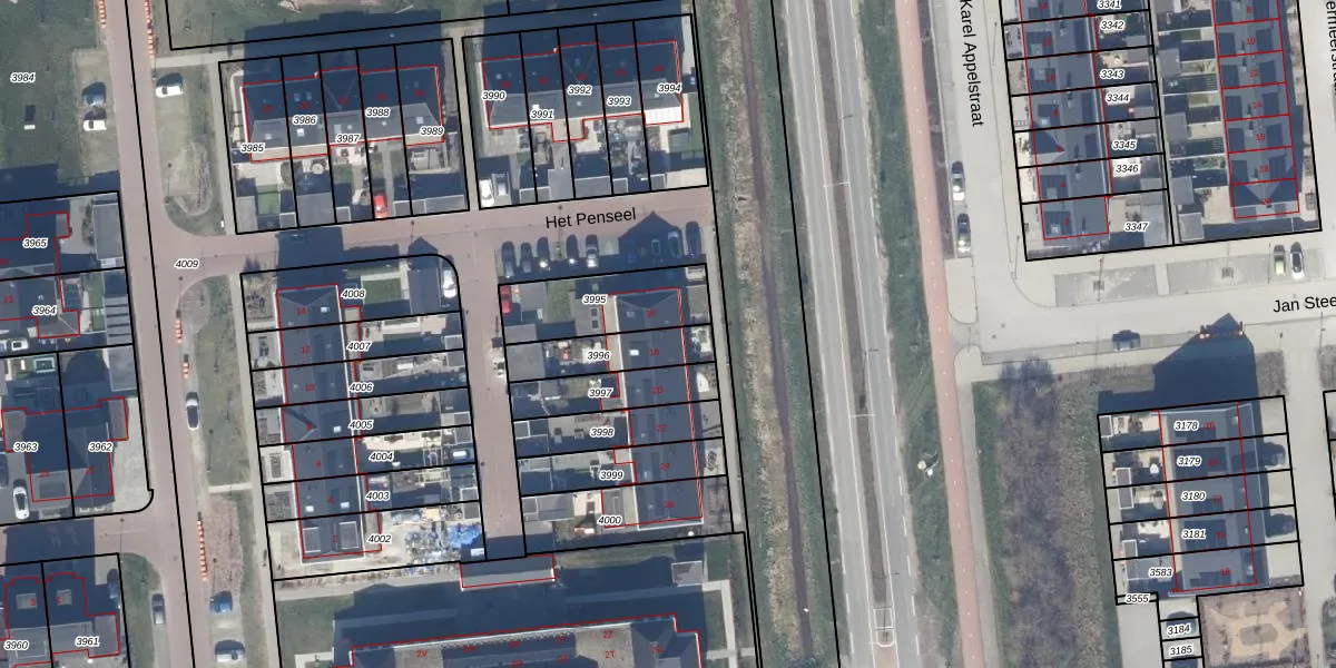 Gebruik de zoekbalk of klik op een perceel voor informatie over de adressen binnen dit perceel.