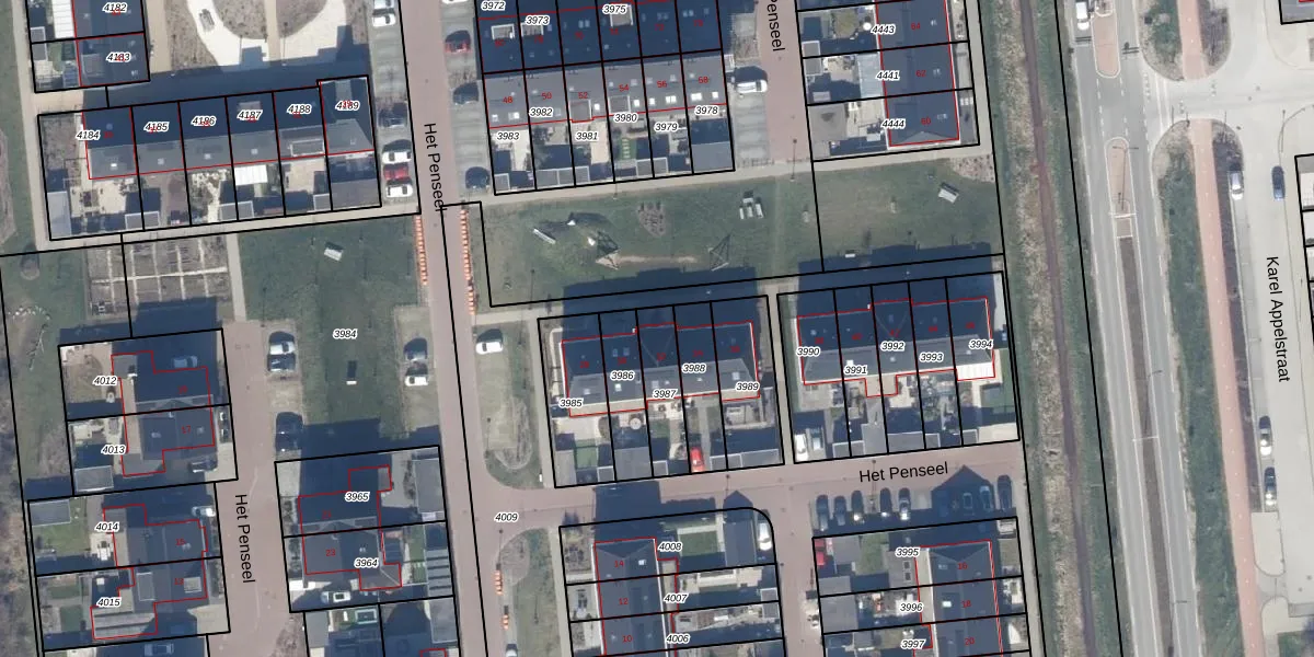 Het Penseel 32 is gelegen op kadastraal perceel DTN01B3987. Deze kadastrale aanduiding is uniek en wordt gebruikt door het Kadaster om eigendomsrechten en andere zakelijke rechten vast te leggen. Het perceel maakt onderdeel uit van de kadastrale gemeente Dronten.
