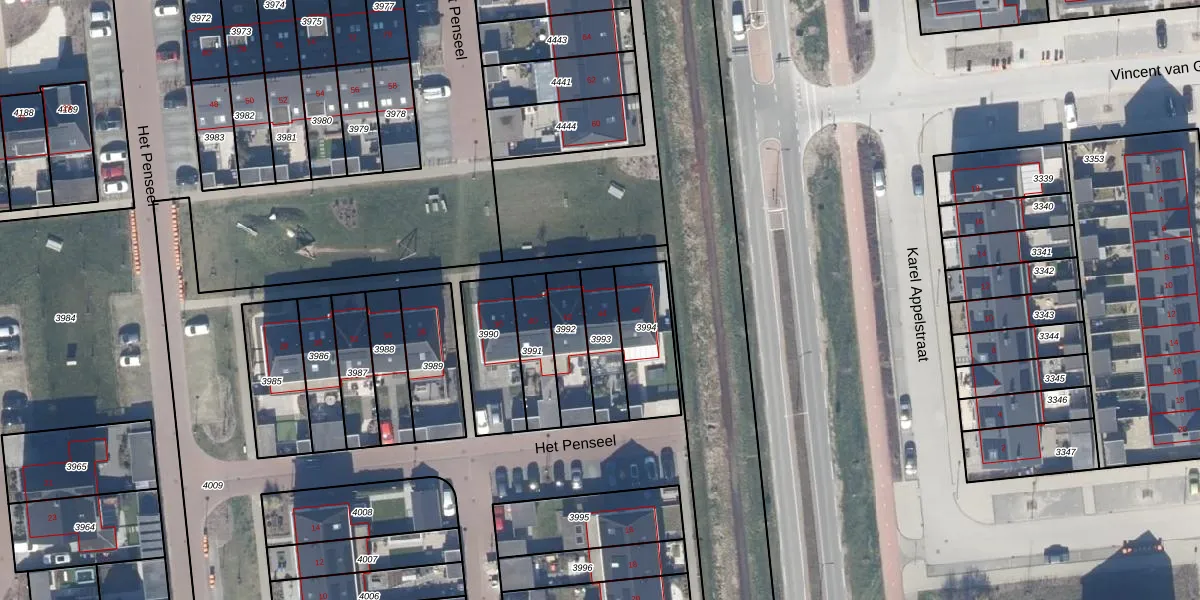 Het perceel waarop Het Penseel 44 staat heeft een oppervlakte van 147 m². Dit is een middelgroot perceel. De perceeloppervlakte wordt geregistreerd door het Kadaster. Gedetailleerde informatie over de maten van dit perceel kunt u vinden in het rapport Kadastrale kaart met maatvoering van Het Penseel 44.