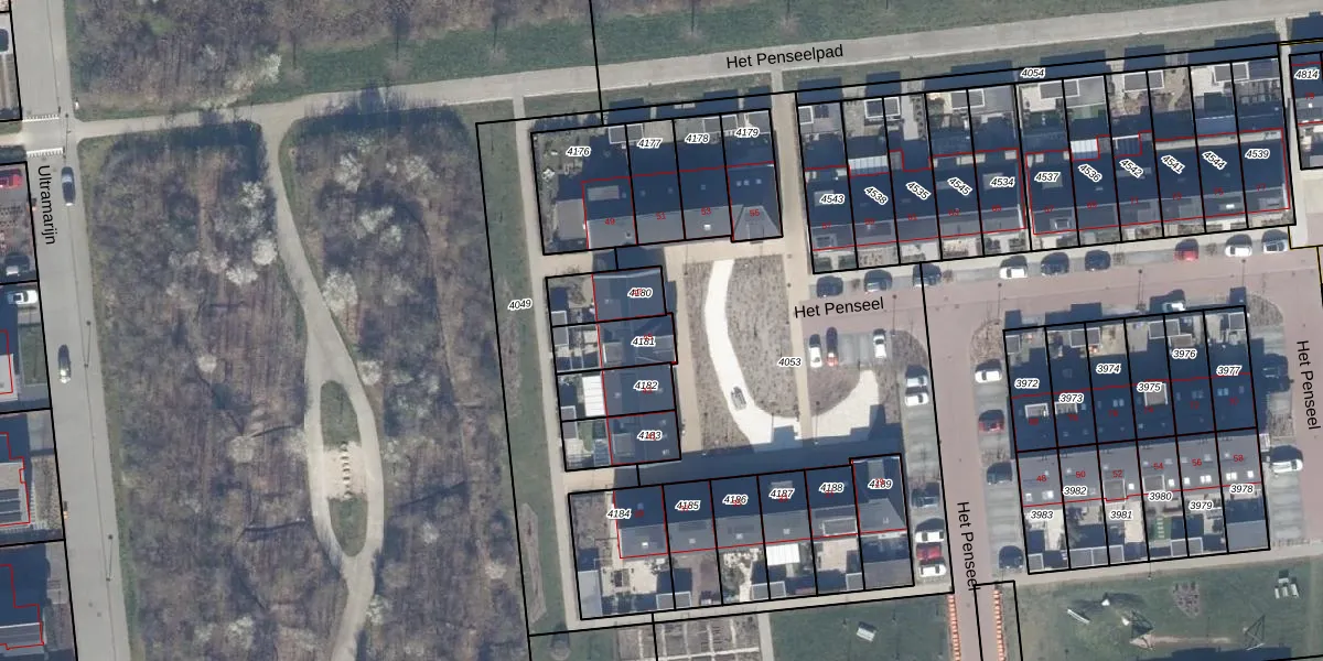 Het Penseel 45 is gelegen op kadastraal perceel DTN01B4181. Deze kadastrale aanduiding is uniek en wordt gebruikt door het Kadaster om eigendomsrechten en andere zakelijke rechten vast te leggen. Het perceel maakt onderdeel uit van de kadastrale gemeente Dronten.