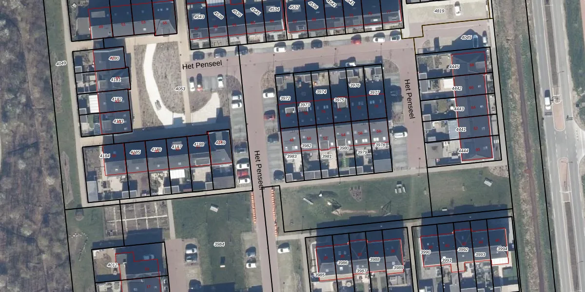 Gebruik de zoekbalk of klik op een perceel voor informatie over de adressen binnen dit perceel.