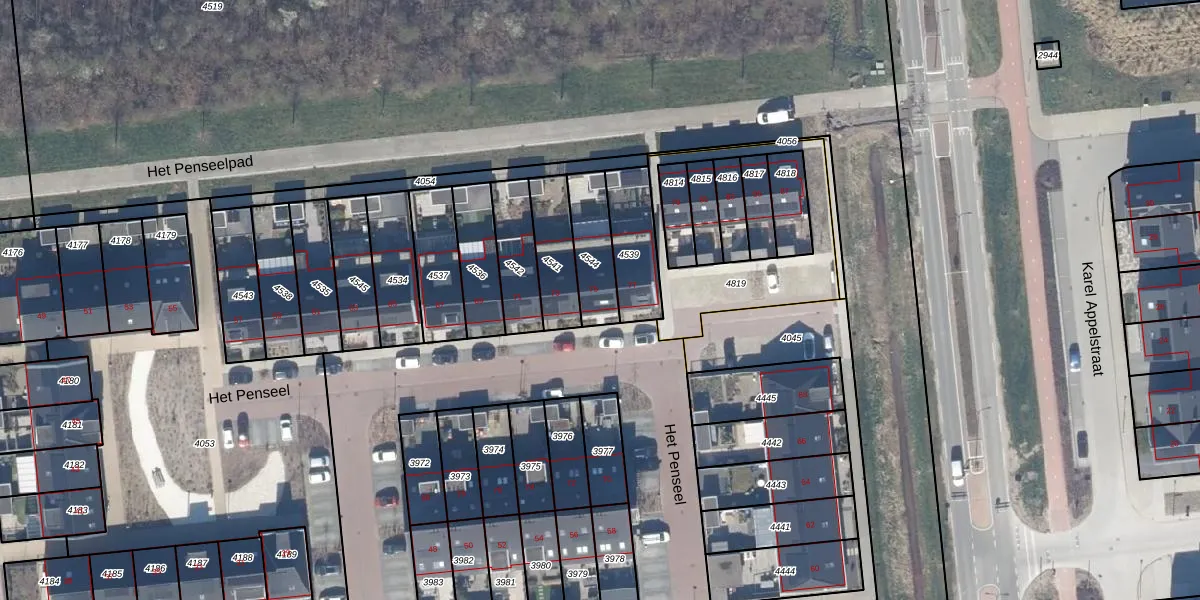 Het perceel waarop Het Penseel 75 staat heeft een oppervlakte van 164 m². Dit is een middelgroot perceel. De perceeloppervlakte wordt geregistreerd door het Kadaster. Gedetailleerde informatie over de maten van dit perceel kunt u vinden in het rapport Kadastrale kaart met maatvoering van Het Penseel 75.