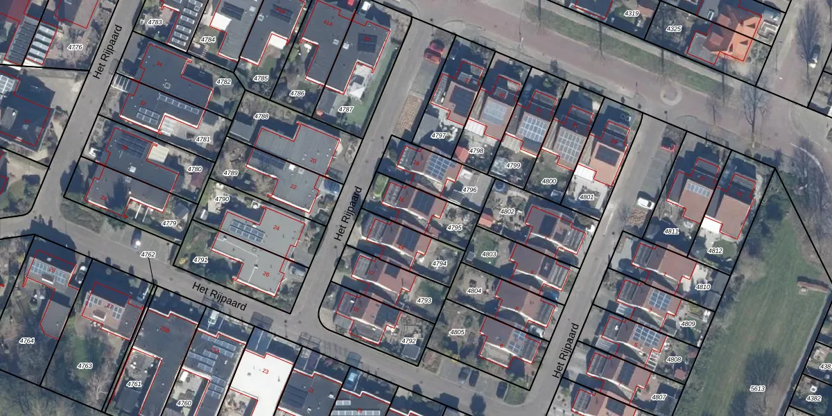 Het perceel waarop Het Rijpaard 16 staat heeft een oppervlakte van 258 m². Dit is een middelgroot perceel. De perceeloppervlakte wordt geregistreerd door het Kadaster. Gedetailleerde informatie over de maten van dit perceel kunt u vinden in het rapport Kadastrale kaart met maatvoering van Het Rijpaard 16.