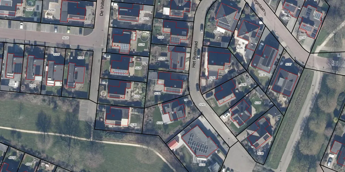 Het perceel waarop Het Ruiterpad 5 staat heeft een oppervlakte van 426 m². Dit is een groot perceel. De perceeloppervlakte wordt geregistreerd door het Kadaster. Gedetailleerde informatie over de maten van dit perceel kunt u vinden in het rapport Kadastrale kaart met maatvoering van Het Ruiterpad 5.