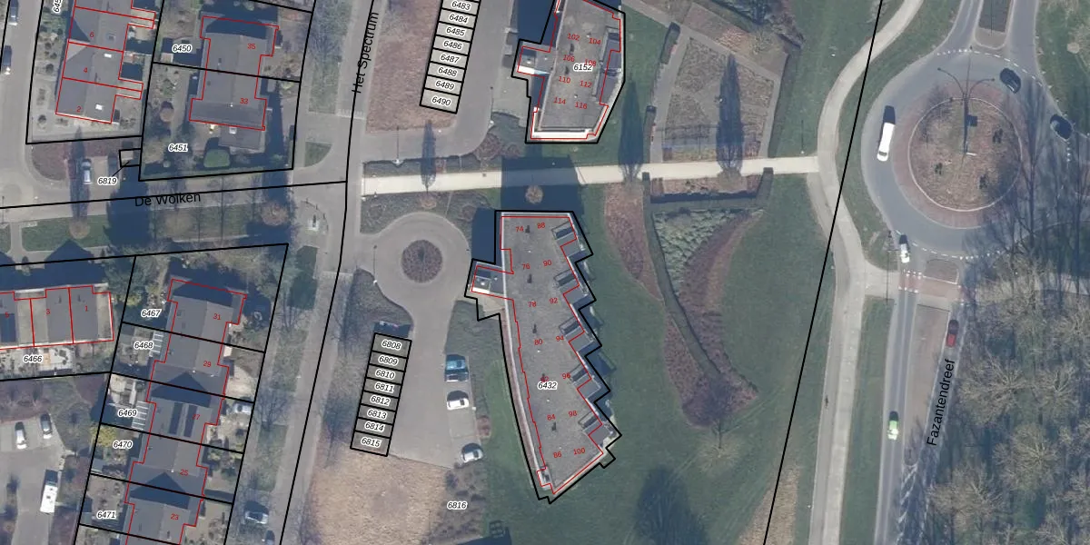 Het Spectrum 100 is gelegen op kadastraal perceel DTN01A6432. Deze kadastrale aanduiding is uniek en wordt gebruikt door het Kadaster om eigendomsrechten en andere zakelijke rechten vast te leggen. Het perceel maakt onderdeel uit van de kadastrale gemeente Dronten.