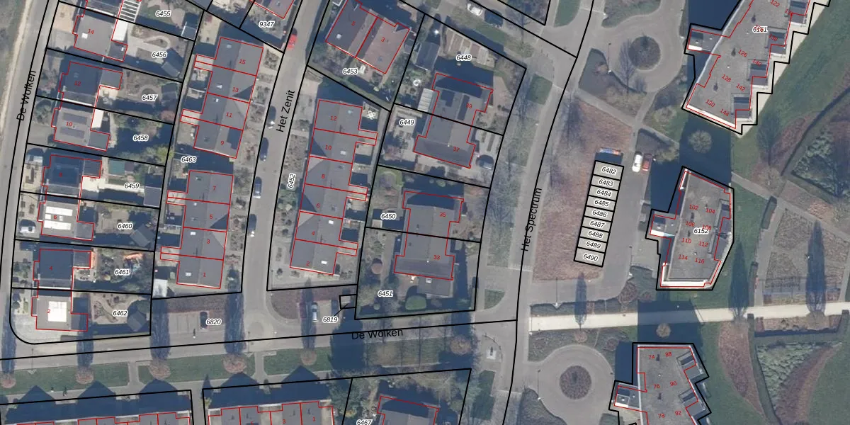 Het Spectrum 35 is gelegen op kadastraal perceel DTN01A6450. Deze kadastrale aanduiding is uniek en wordt gebruikt door het Kadaster om eigendomsrechten en andere zakelijke rechten vast te leggen. Het perceel maakt onderdeel uit van de kadastrale gemeente Dronten.