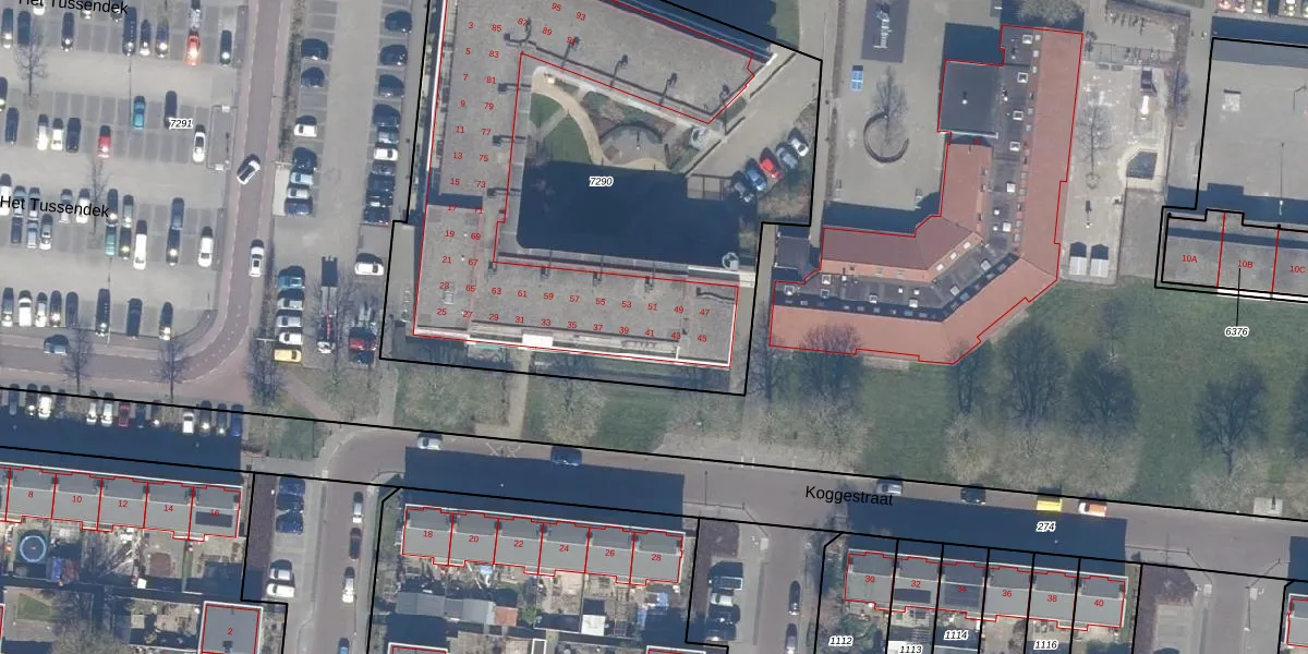 Het adres is gelegen op perceel 7290 in de sectie A en de kadastrale gemeente Dronten. De kadastrale aanduiding is aldus DTN01-A-7290. Het perceel is kleiner dan gemiddeld in Dronten. Het perceel is 3531 m² groot, terwijl het gemiddelde ligt op 1,8 ha. Het grootste perceel in de kadastrale gemeente is 25,03 km². Het kleinste perceel heeft een oppervlakte van 0 m². Er zijn 50 adressen aanwezig op het perceel. In de Basisregistratie Kadaster (BRK) werden de grenzen van het perceel geregistreerd op 26-09-2002.