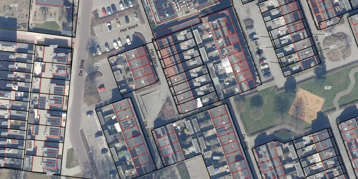 Het Want 7 is gelegen op kadastraal perceel DTN01A7362. Deze kadastrale aanduiding is uniek en wordt gebruikt door het Kadaster om eigendomsrechten en andere zakelijke rechten vast te leggen. Het perceel maakt onderdeel uit van de kadastrale gemeente Dronten.